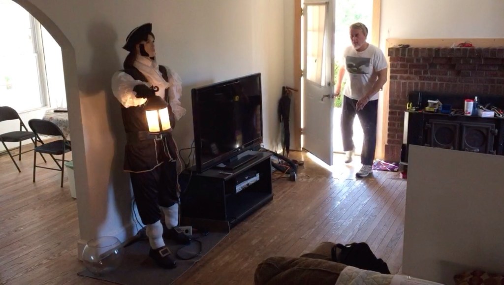 This video shows you how I made this motion activated light fixture in the form of a statue meant to represent Paul Revere. I was able to do this without much expense by using ordinary electrical parts and pipe purchased from a local building supply.