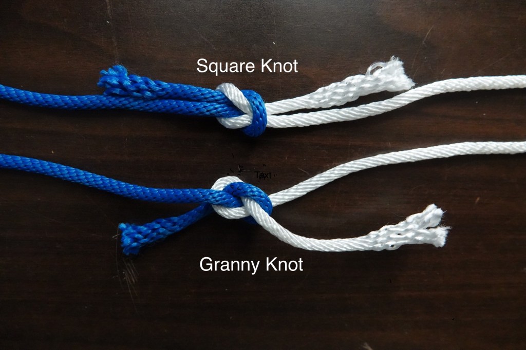 This anisotropicplus video shows how to tie both a granny knot and a square (reef) knot and demonstrates how the granny knot is inherently more prone to slippage and is an inferior knot.